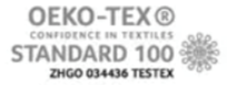 OEKO-TEX indikerer at tekstilerne er fri for skadelige kemikalier.